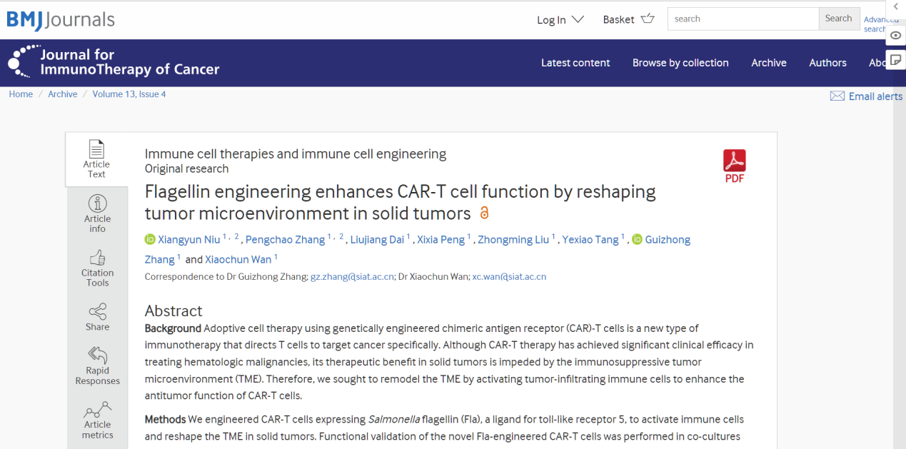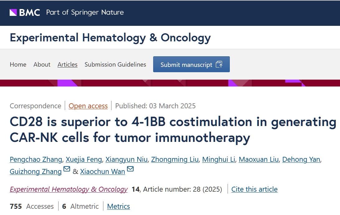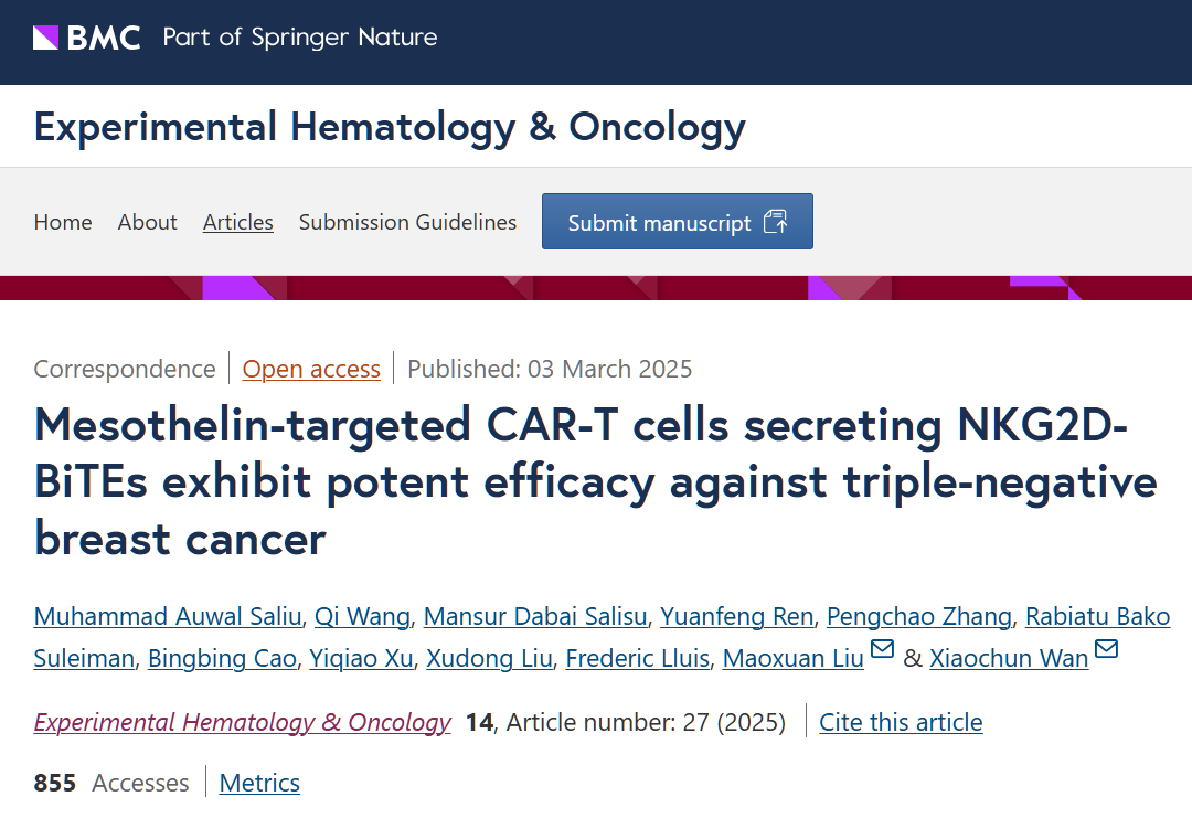 Experimental Hematology & Oncology,Journal for ImmunoTherapy of Cancer | 科研团队在肿瘤免疫治疗方面取得进展
