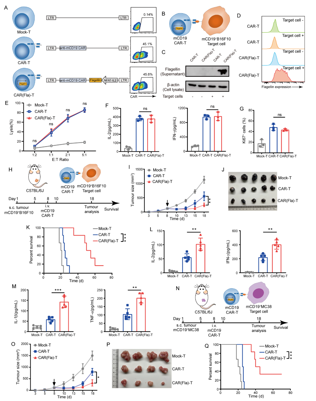 图3. CAR(Fla)-T细胞具有比传统CAR-T细胞更好的体内抗肿瘤活性