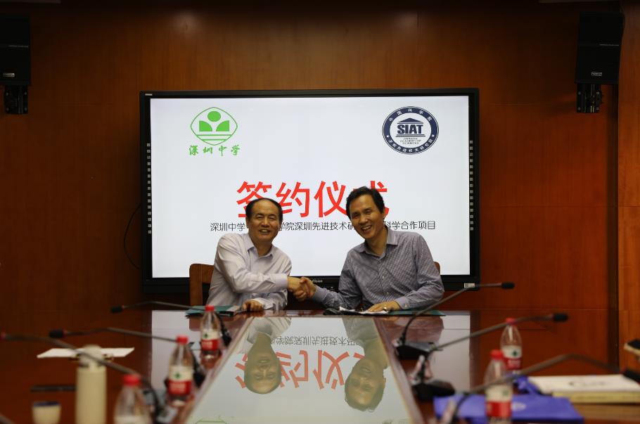 深圳中学校长朱华伟(左)与凯发k8国际脑所所长王立平(右)签约