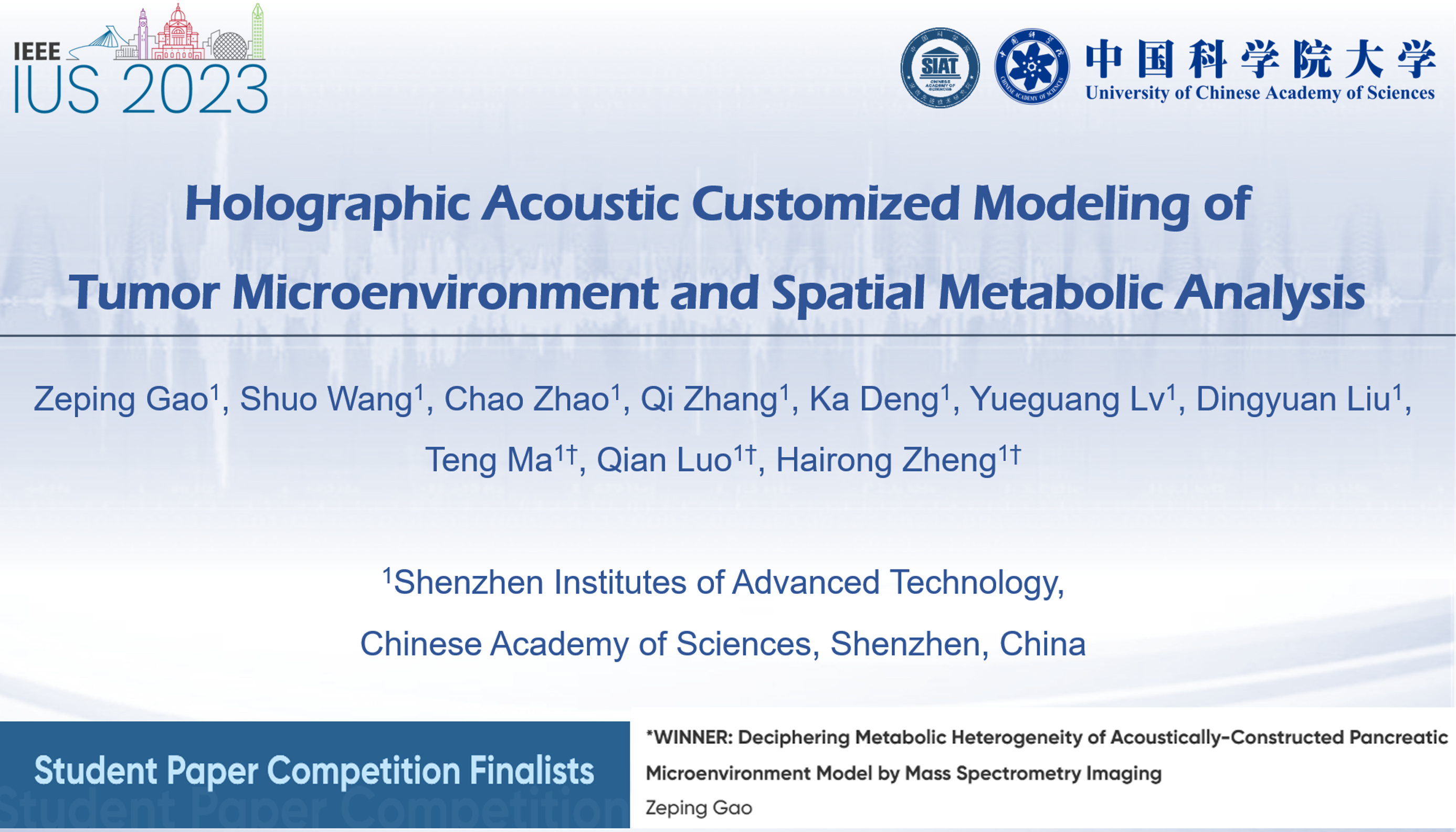 获奖论文以Deciphering Metabolic Heterogeneity of Acoustically-Constructed Pancreatic Cancer Microenvironment Model by Mass Spectrometry Imaging(胰腺癌微环境模型的全息声学构建与代谢异质性解读)为题,由深圳先进超声团队以及质谱成像团队共同完成,凯发k8国际国科大硕士生高泽平为论文和本研究的主要作者以及汇报人。